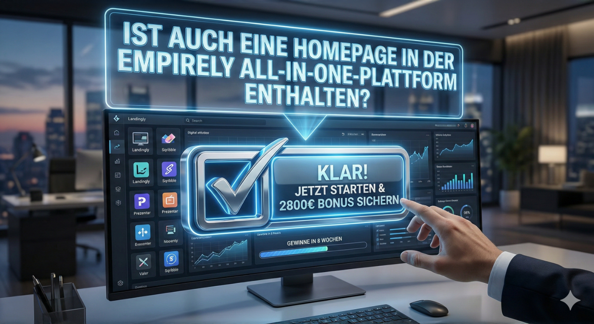 Die Frage „Ist eine Homepage enthalten?“ ist mit einem lauten JA beantwortet. Aber die eigentliche Chance liegt in dem, was darüber hinausgeht. Empirely gibt Ihnen die Macht, ein skalierbares, automatisiertes digitales Business aufzubauen, ohne technisches Vorwissen.