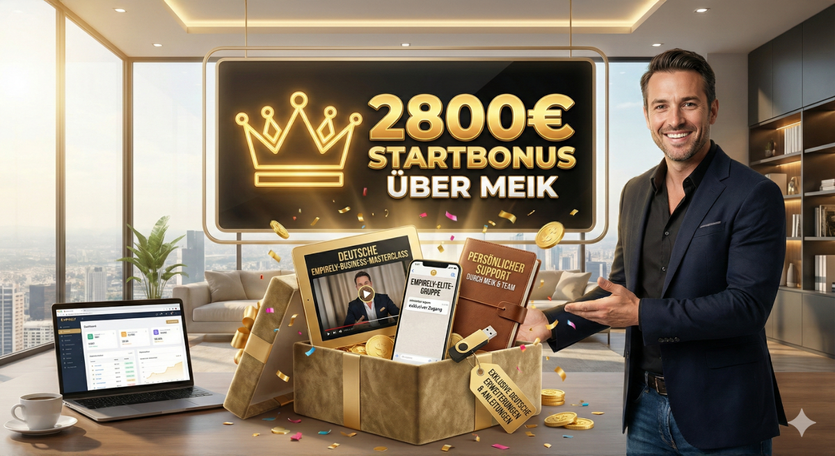 Wenn du jetzt über Meiks Affiliate Tipps startest, sicherst du dir nicht nur die mächtigste Plattform der Welt, sondern ein Bonus-Paket im Wert von 2.800 €, das dich im deutschsprachigen Raum konkurrenzlos macht: