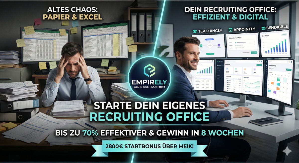 Stell dir vor, du könntest ein komplettes Business aus dem Boden stampfen, das eine der größten Schwachstellen deutscher Unternehmen löst – und das alles von deinem Laptop aus. Wir reden nicht von "irgendeinem" Business. Wir reden von deinem eigenen Recruiting Office.