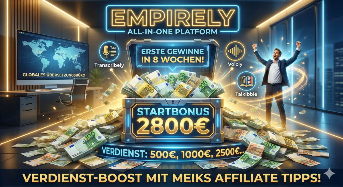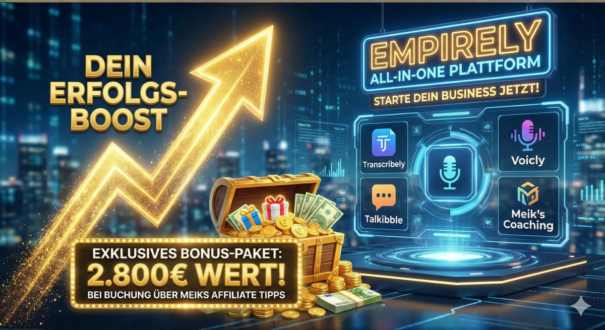 Du musst diesen Weg nicht alleine gehen. Wenn du Empirely über Meiks Affiliate Tipps sicherst, erhältst du einen unfairen Vorteil gegenüber allen anderen.
