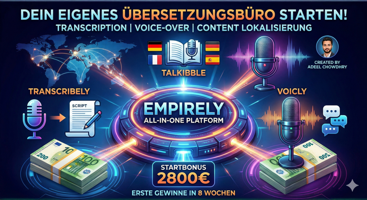 Stell dir vor, ein YouTuber oder Unternehmer hat ein tolles Video auf Englisch, verliert aber den riesigen deutschen oder spanischen Markt. Hier kommst du ins Spiel – bewaffnet mit der EMPIRELY All-in-One Plattform.